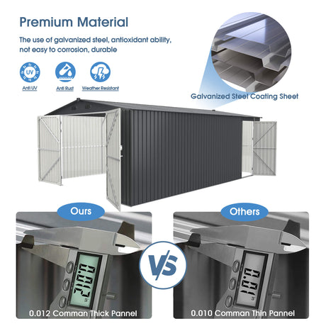 10'x20' Plus Upgraded Metal Garage Shed with Double Front Doors, Side Entry Door