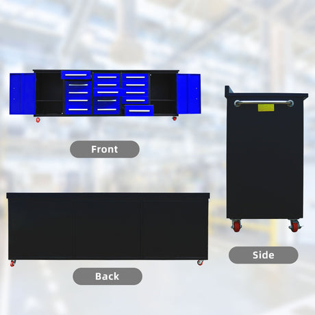10ft Workbench Storage Cabinet with 15 Drawers & 2 Cabinets