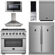 The Forno Appliance Package - 36 in. Pro Gas Range with 6 Italian Burners in Stainless Steel, Range Hood, Refrigerator and Freezer, Microwave Drawer, Dishwasher, and Wine Cooler. This appliance bundle is perfect for your next kitchen model, and comes at a highly affordable price!