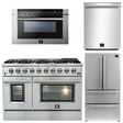 The Forno Appliance Package - 48 in. Gas Range with 8 Italian Burners in Stainless Steel, Refrigerator and Freezer, Microwave Drawer, and Dishwasher. The appliance bundle is perfect for your next kitchen model, and comes at a highly affordable price! Read more below!