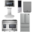 This Forno Kitchen appliance package is complete with a Professional 48" Gas Range, 48" Wall Mount Range Hood, 36" Refrigerator, 24" Dishwasher, 24" Wine Cooler, and 24" Microwave Drawer.