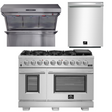 FORNO Appliance Package - 48 Inch Gas Burner/Electric Oven Pro Range, Wall Mount Range Hood, Dishwasher, AP-FFSGS6187-48-2