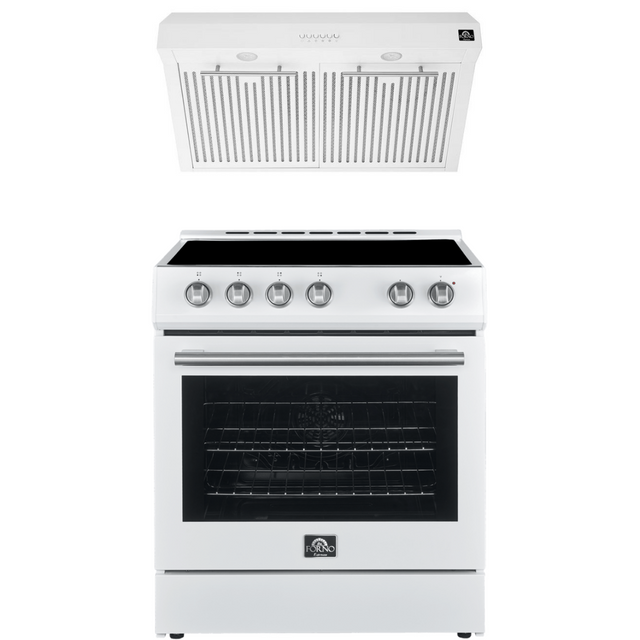 FORNO Espresso Package - 30" Electric Range and Range Hood in White with Silver Handles, FBDL-002-03US
