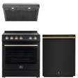 FORNO Espresso Package - 30" Electric Range, Range Hood and Dishwasher in Black with Antique Brass Handles