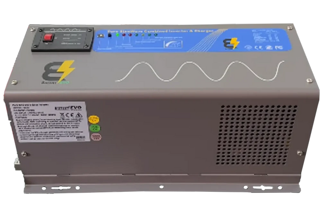 The BatteryEVO 3000W Pure Sine Inverter delivers reliable off-grid AC power for remote cabins, RVs, and backup systems. Its high-efficiency conversion ensures smooth performance across appliances, and sensitive electronics. Built for durability, it's ideal for sustainable living, mobile energy setups, or emergency power needs.