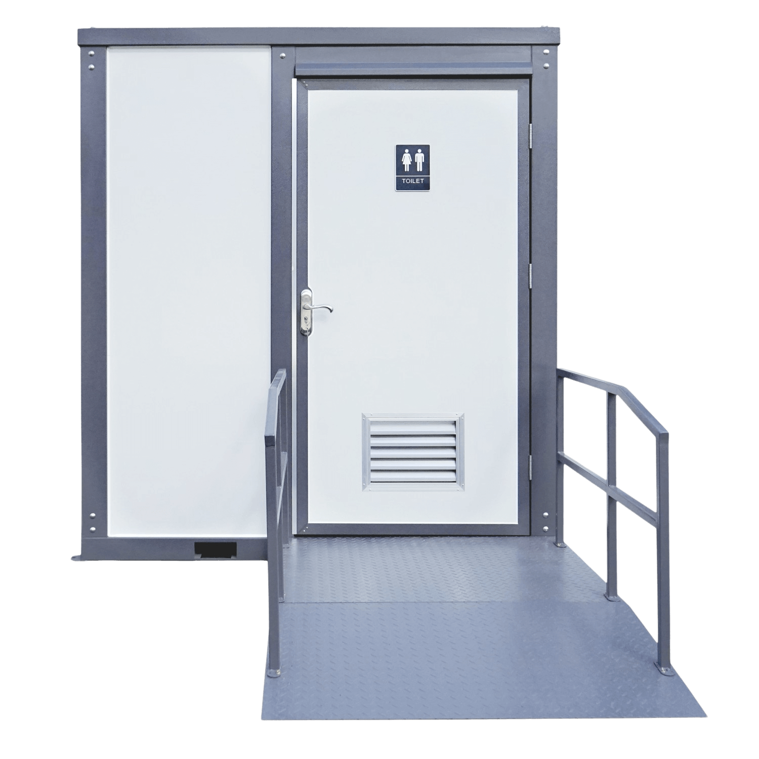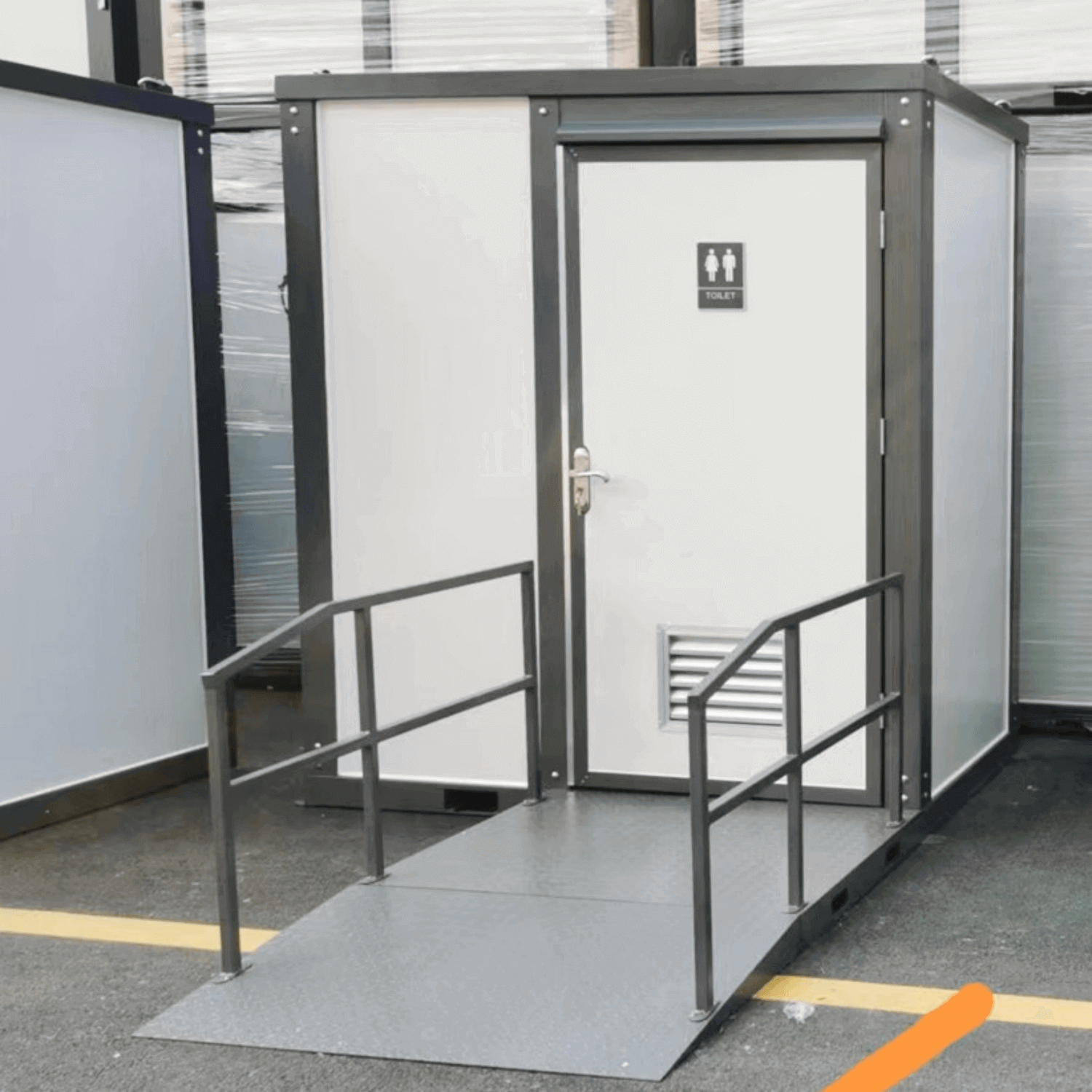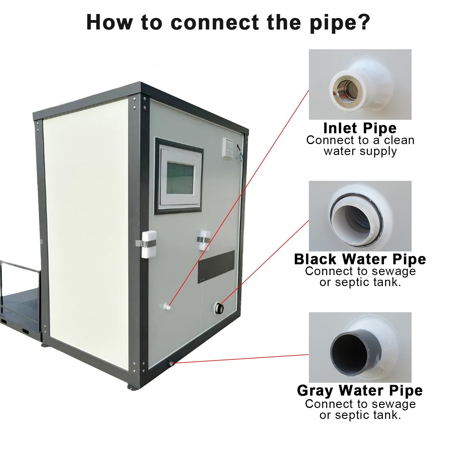 If this Bastone Handicap-Accessible Portable Restroom for the Disabled is used on a construction site, we recommend you connect toilets to the sanitary sewer system and connect water to the pipe system. If not, you may need tanks outside the structure for waste.
