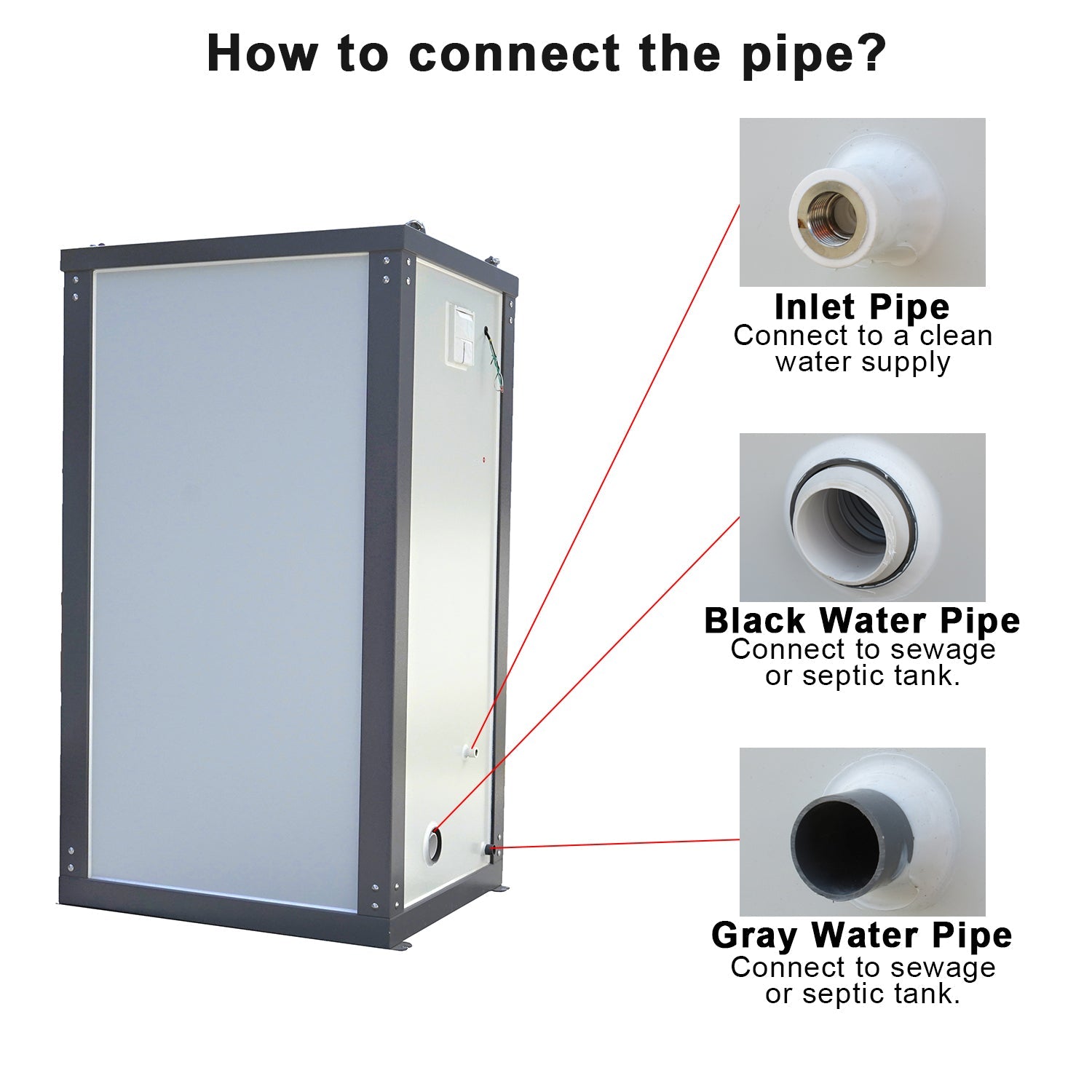 If this Bastone Portable Restroom w/ Sink is used on a construction site, we recommend you connect toilets to the sanitary sewer system and connect water to the pipe system. If not, you may need tanks outside the structure for waste.