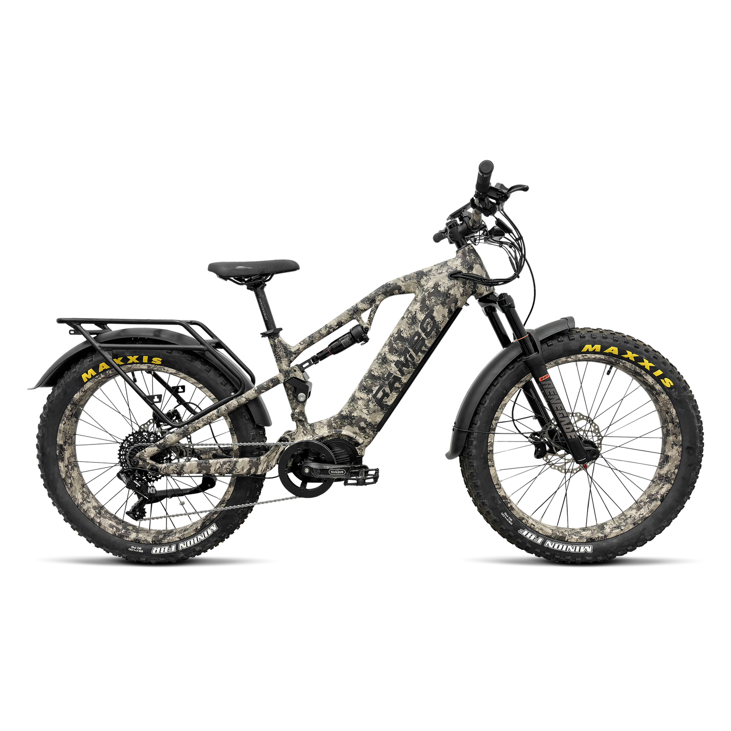 The name says it all, the Rambo Dominator Ultra. You asked, we answered! Our customer base asked for a full suspension bike built around the serious outdoorsman to handle extreme terrain without killing you’re back. This E-Bike is engineered and highly tested to provide you with the ultimate Rambo riding experience. The Dominator is built in 2 different configurations (Ultra and HD) please understand both options to understand which one better suit your needs! The Dominator Ultra focuses on riders that want amazing power with rider pedal feedback, but sacrifices motor noise VS the Dominator HD. Every aspect of our Dominator Ultra was designed and manufactured to produce an extremely reliable and durable E-Bike with NO limitations. Our Rambo Design Team closely studied every detail and component from the tread up as we developed the Dominator.