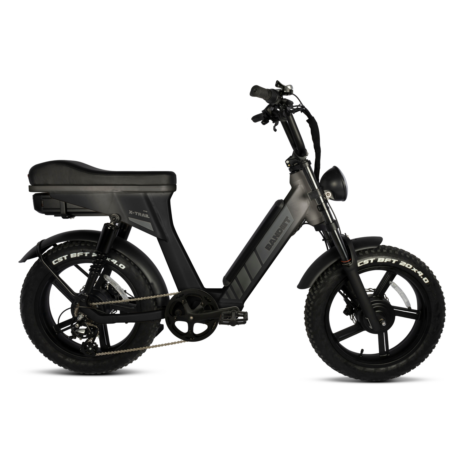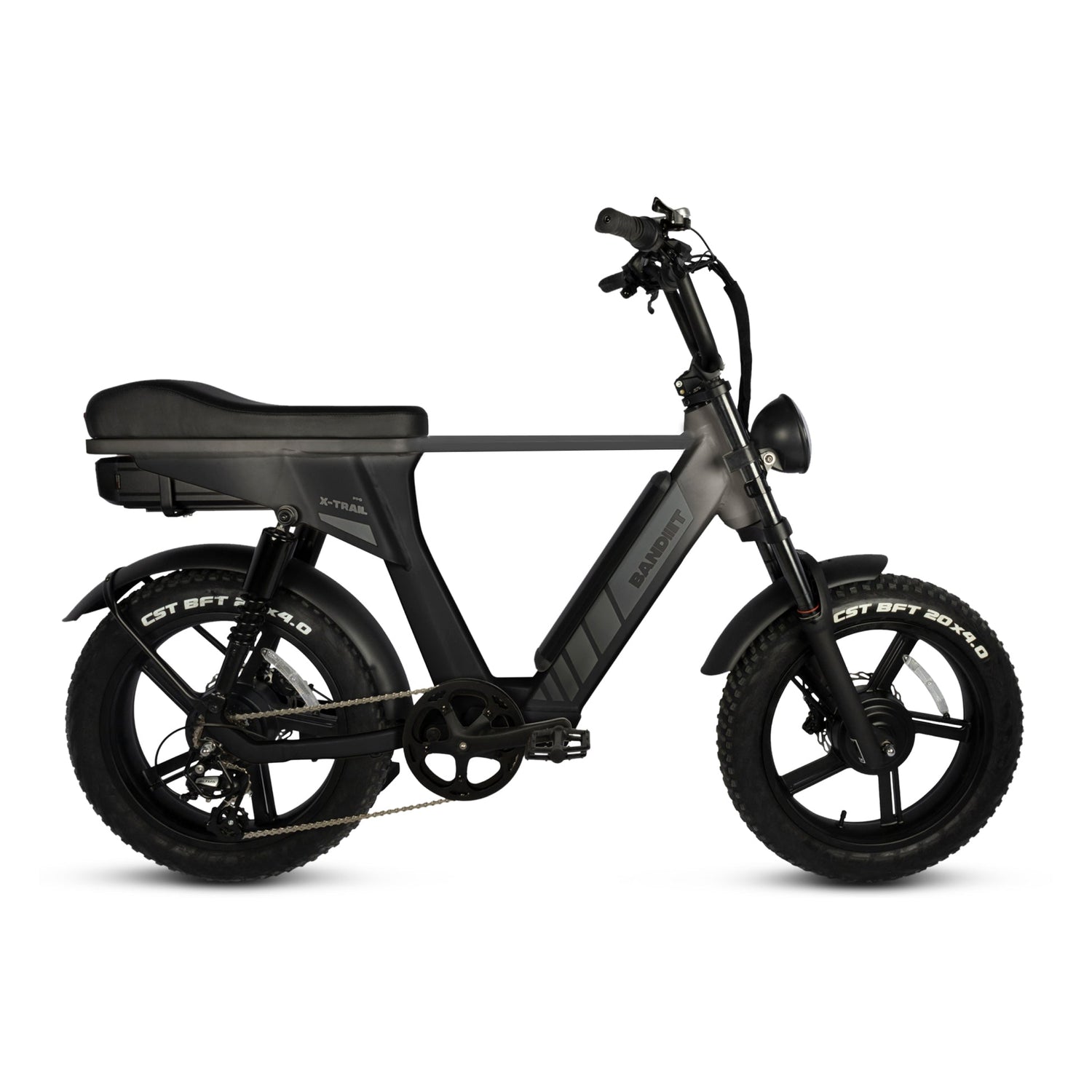 The Bandit X-Trail Pro is engineered for high-intensity riding and exceptional power. Its dual 1920Wh battery system (48V 20Ah + 48V 20Ah) charges in just 5 hours and delivers thrilling top speeds of 38–42+ MPH. With a 1000W rear motor and a 750W front motor driven by a 48V 40A controller, this e-bike provides a strong, responsive, and controlled ride.