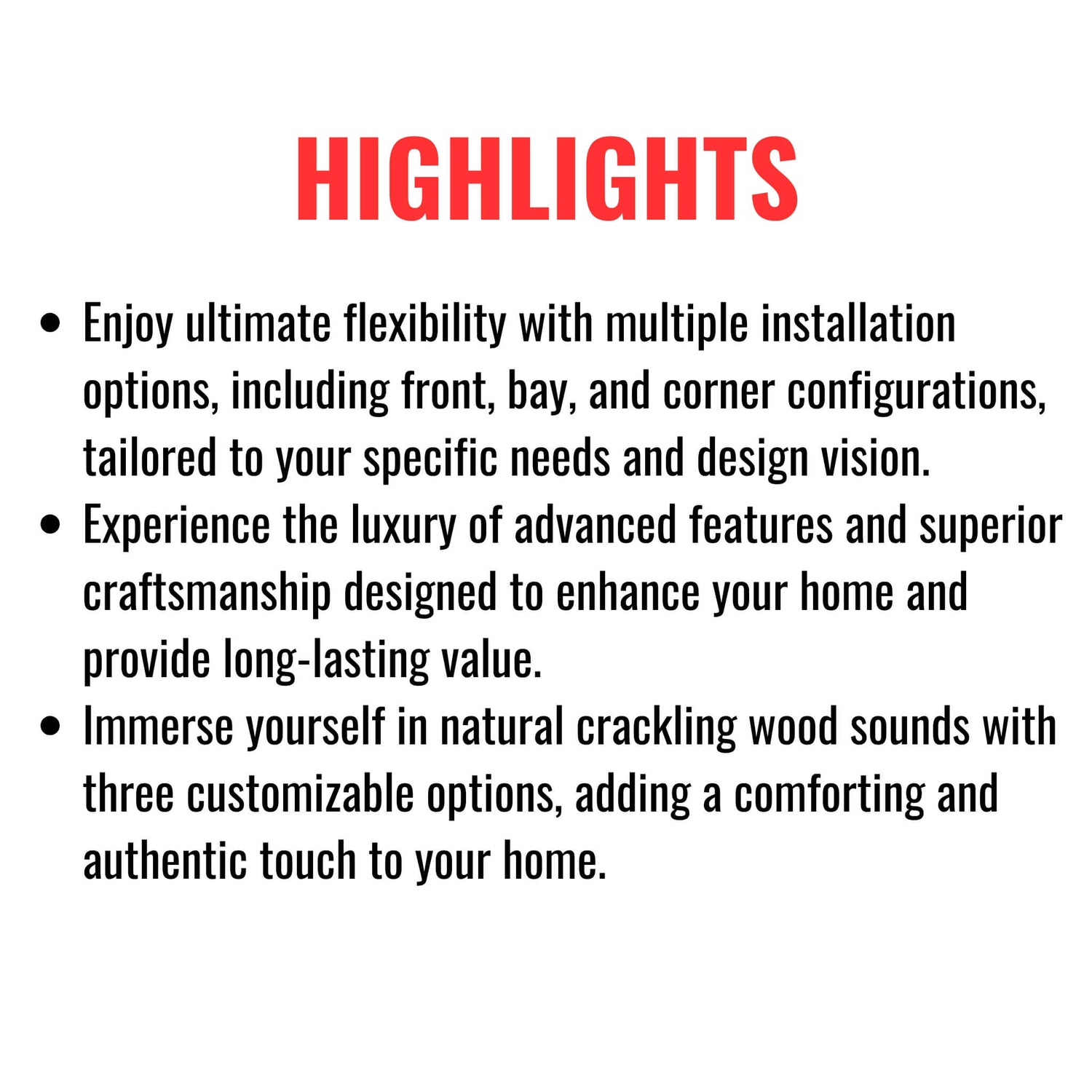 - Enjoy four versatile installation options, including front-facing, corner setups, or bay-style, for a seamless fit in any room.