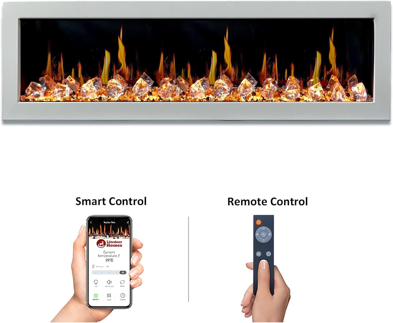 Litedeer Latitude II 68 inch smart wall mount electric fireplace with App - ZEF68XW, 68 inch Fireplace White electric fireplace