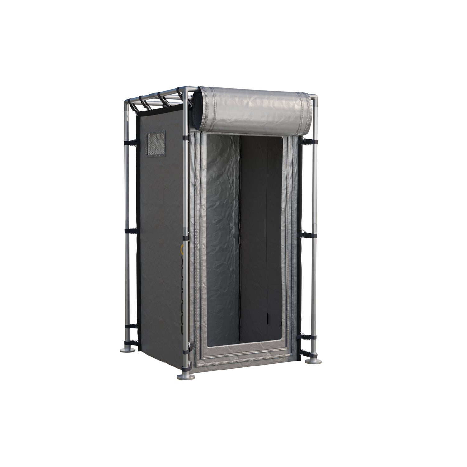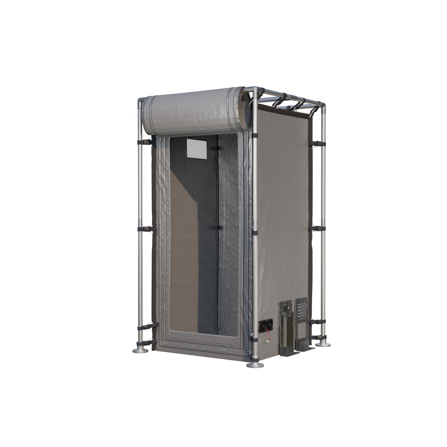 With 104 cubic feet of space, the tent comfortably accommodates an operator along with a small desk and equipment. Transmitters are blocked, ensuring secure communication within the enclosure. Each tent is equipped with double-wall construction, double mag/zip doors, positive air ventilation, and shielded power, Ethernet, and LED lighting.