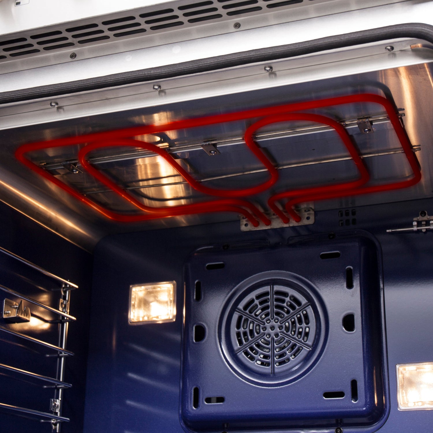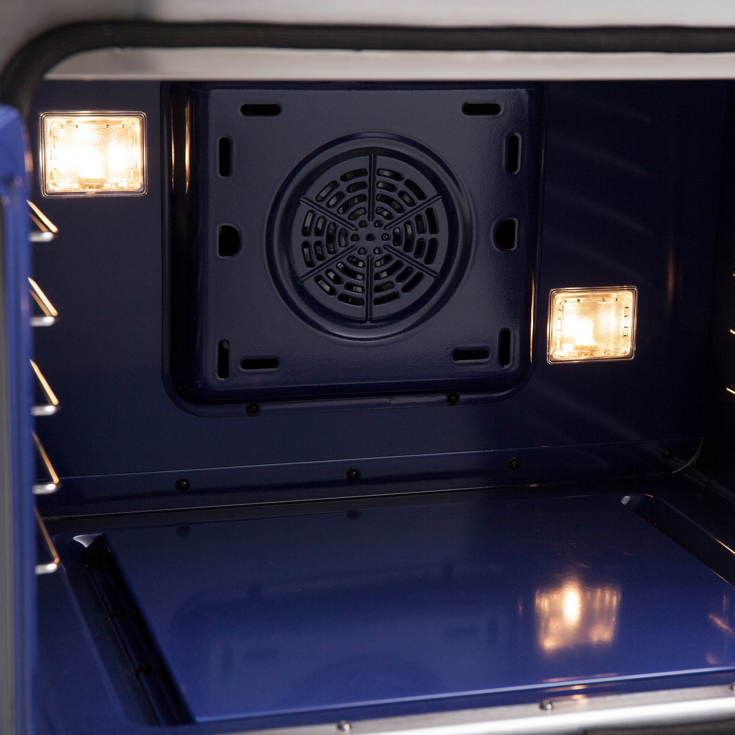 - Illuminated Oven Interior. The speckled blue enamel oven interior features 2 halogen lights, offering visibility and an elegant touch