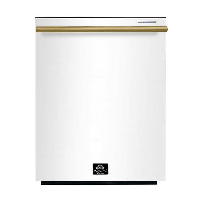 FORNO Espresso Pozzo 24" Built-In Dishwasher in White with Antique Brass Handles, FDWBI8067-24WHT