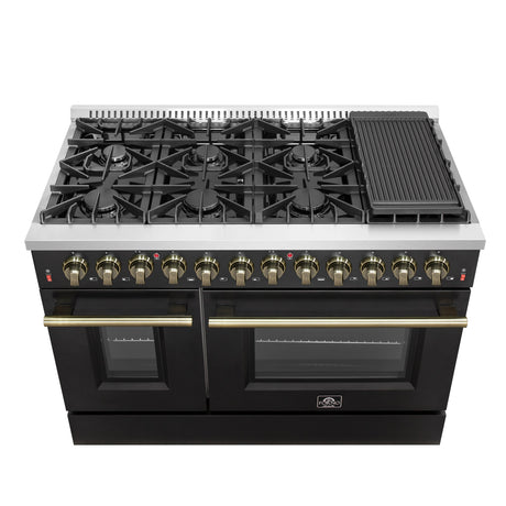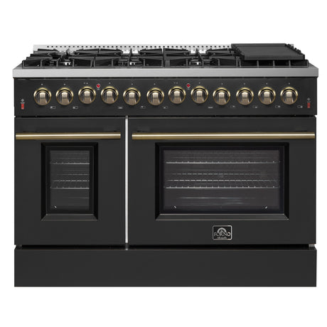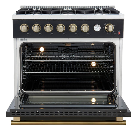 FORNO Espresso Package - 36" Refrigerator and Dishwasher in Black with Antique Brass Handles
