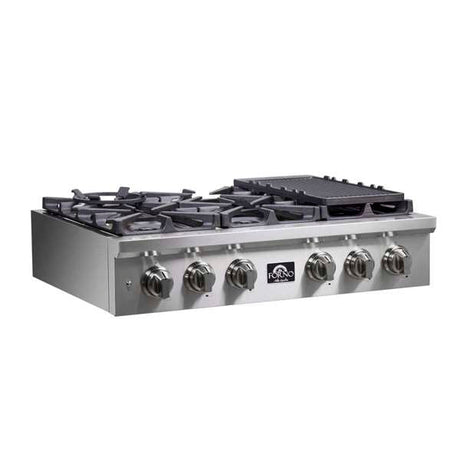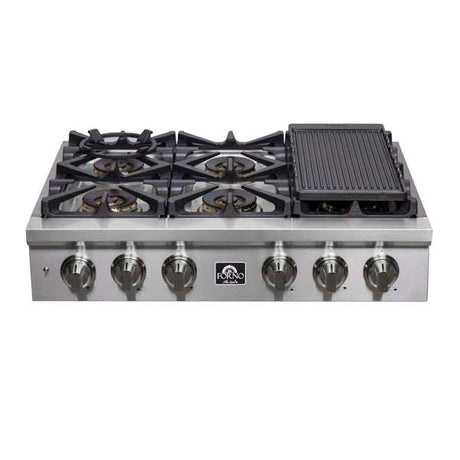 FORNO Spezia 36" Gas Rangetop with 6 Sealed Burners in Stainless Steel, FCTGS5751-36