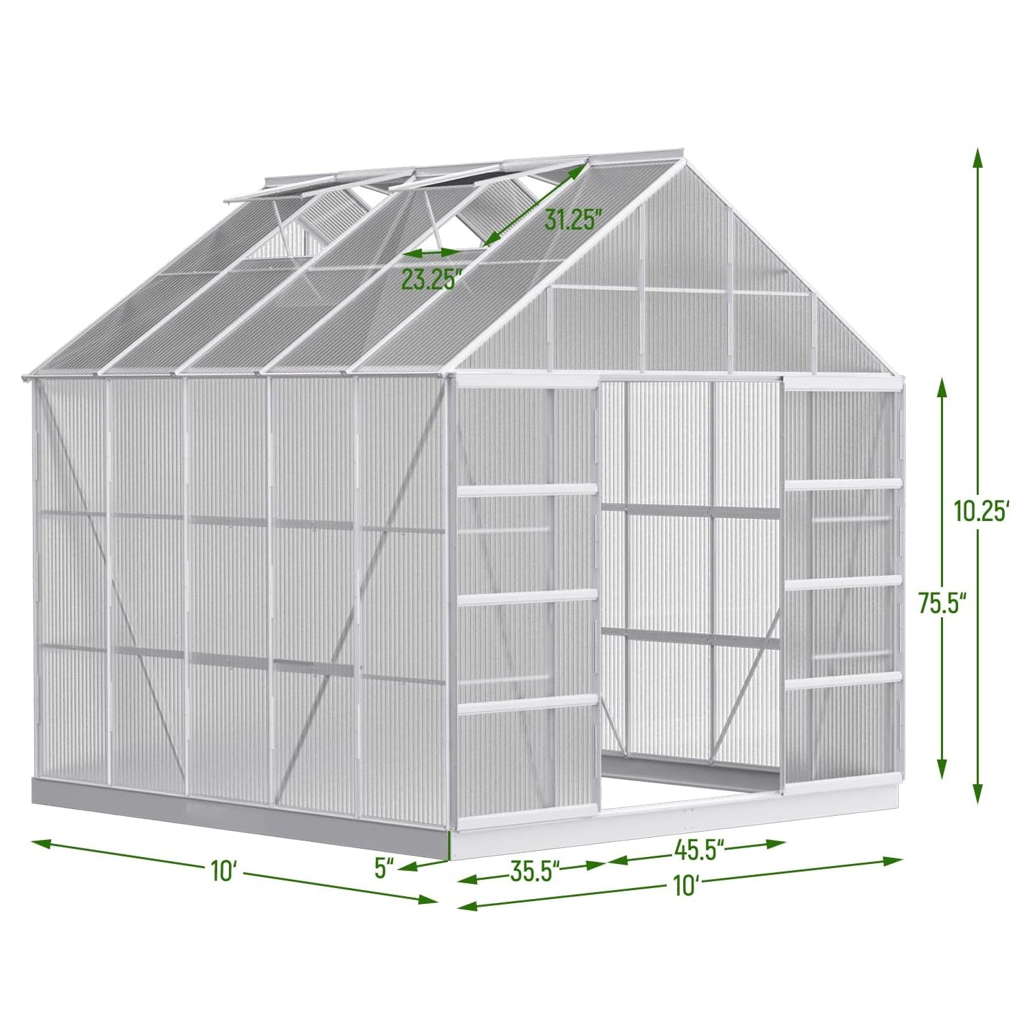[10X10FT] Premium Outdoor Aluminum Walk-In Greenhouse With Polycarbonate Panels & Sliding Doors (94638275) - Buy 1 is backordered and will ship as soon as it is back in stock.