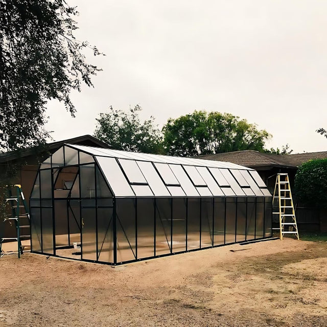 Here's a greenhouse that fits in backyards and actually works. The Summit 12x24 blends barn-style charm with real durability: heavy-duty aluminum frame, 10mm twin-wall polycarbonate panels, and weather-ready features for year-round growing. It keeps plants warm and protected, even when it's cold outside.