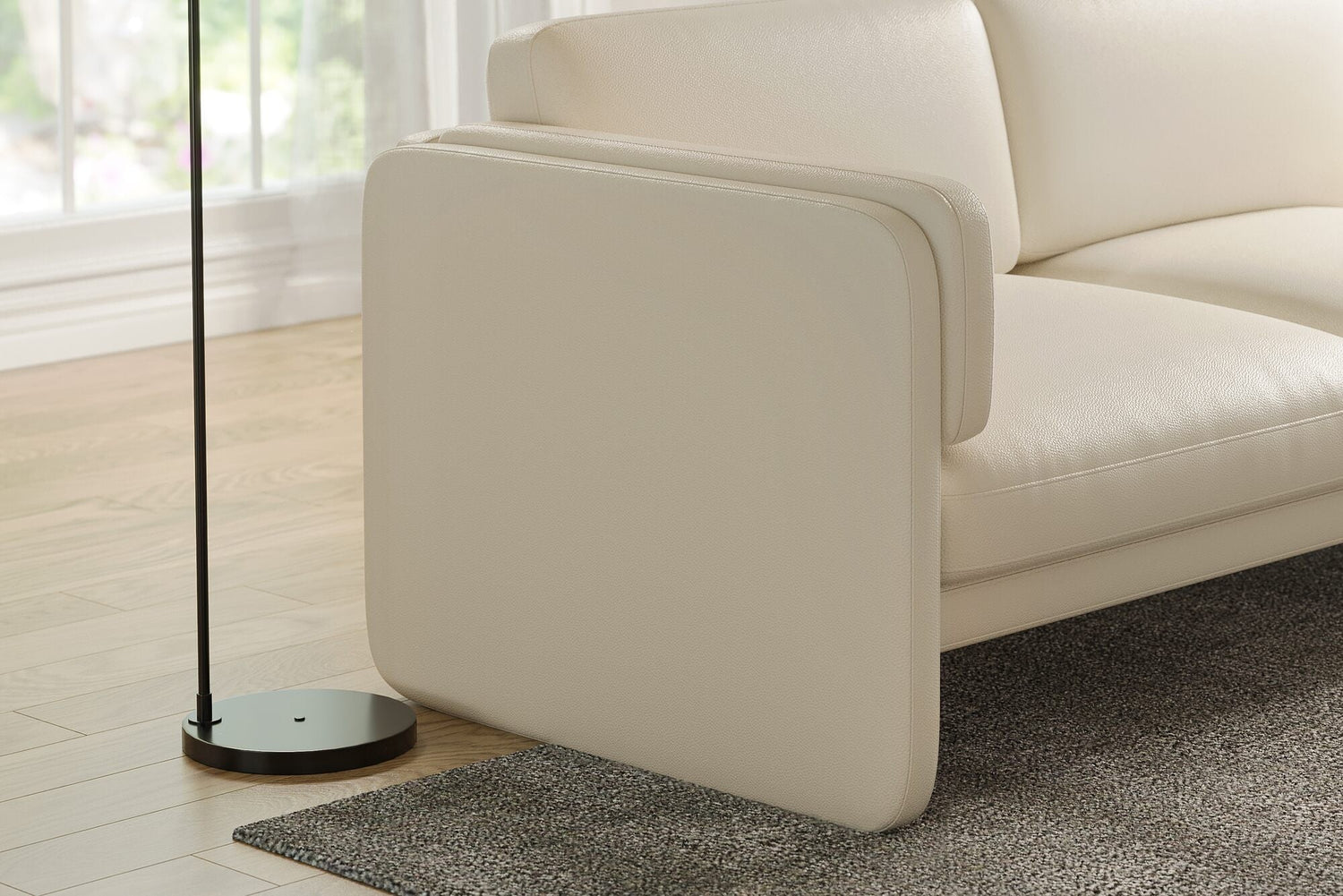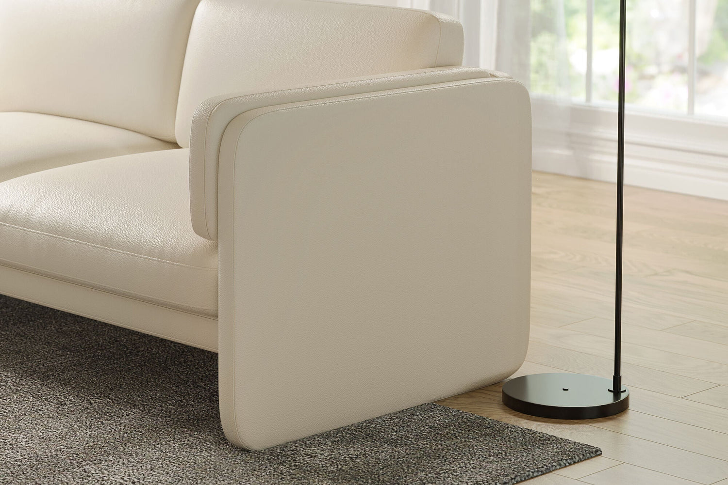 Indulge in luxury with the Annalise Leather Sofa. Sink into its plush memory foam top while enjoying the ease of its higher seat and firm arms. Crafted with Italian Nappa 11000 Top Grain Half-Leather Upholstery and a Kiln-Dried Hardwood frame, this sofa exudes sophistication and durability. Its sculpted high-resiliency foam cushions promise enduring comfort and a pristine look. Experience modern elegance with the cantilever-style chaise that appears to float, Elevate your space with the perfect blend of opulence and convenience—the Annalise Leather Sofa.