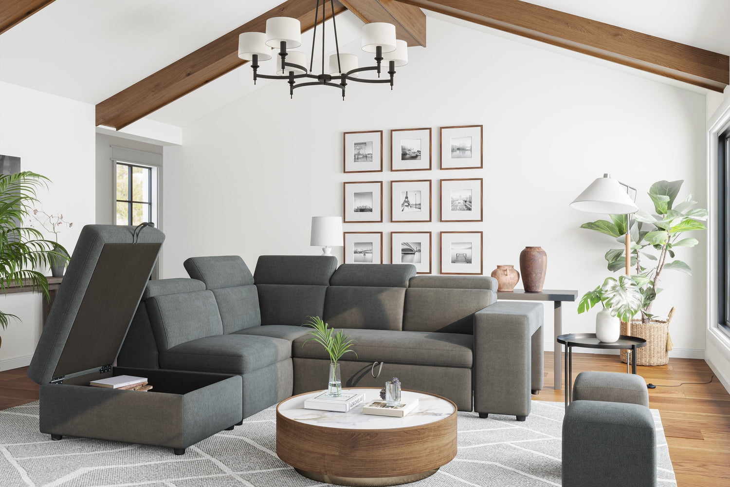 Finn Fabric Sectional Sofa Bed - Light Grey / Left Storage Ottoman is backordered and will ship as soon as it is back in stock.