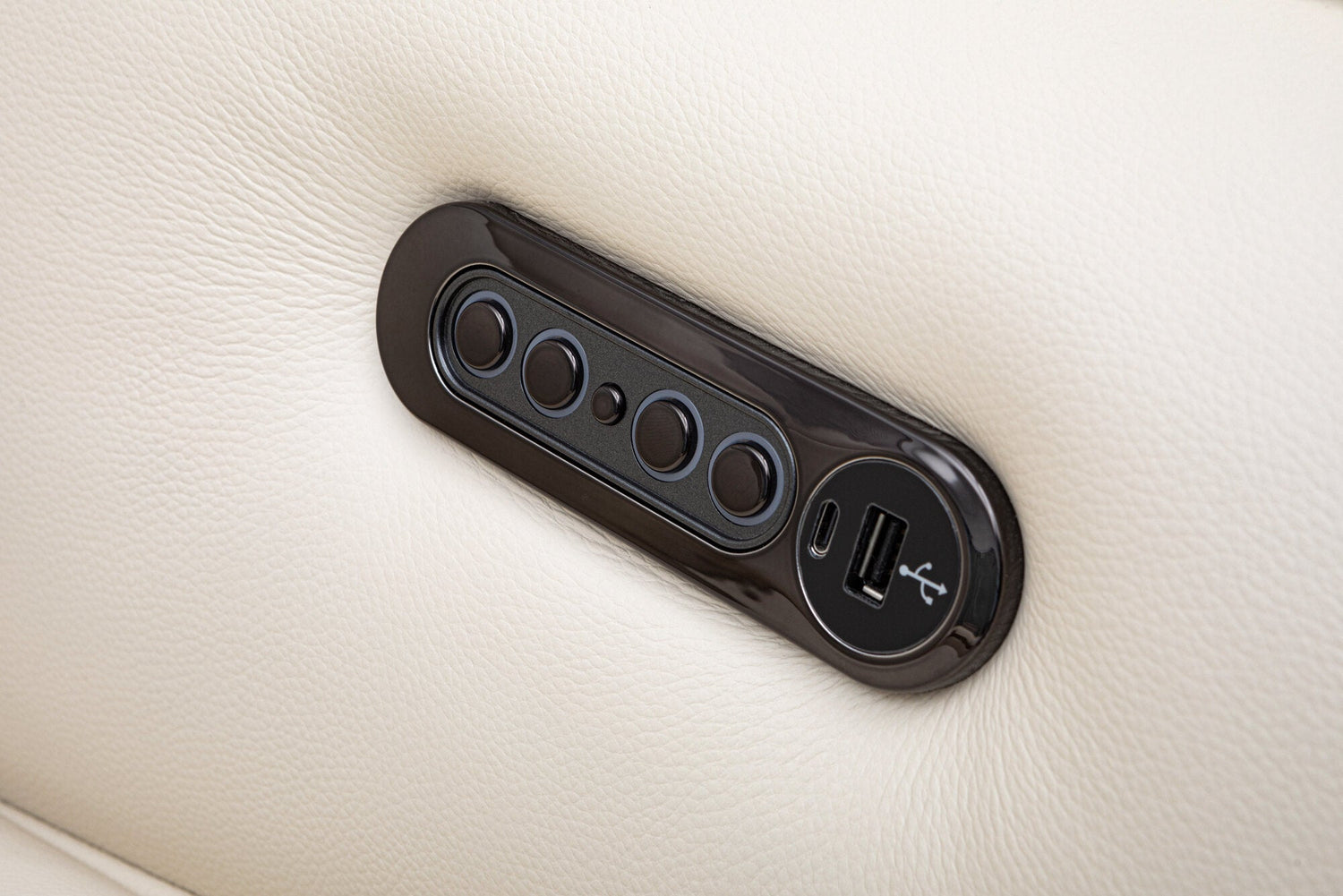 Lesley Leather Dual Recliner Sofa with Console - Beige / Loveseat Console is backordered and will ship as soon as it is back in stock.