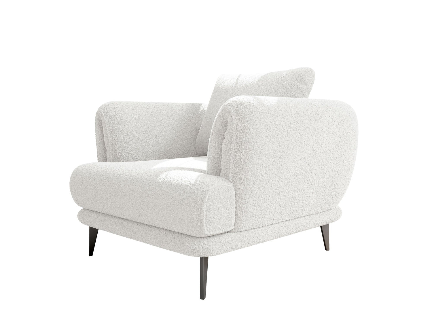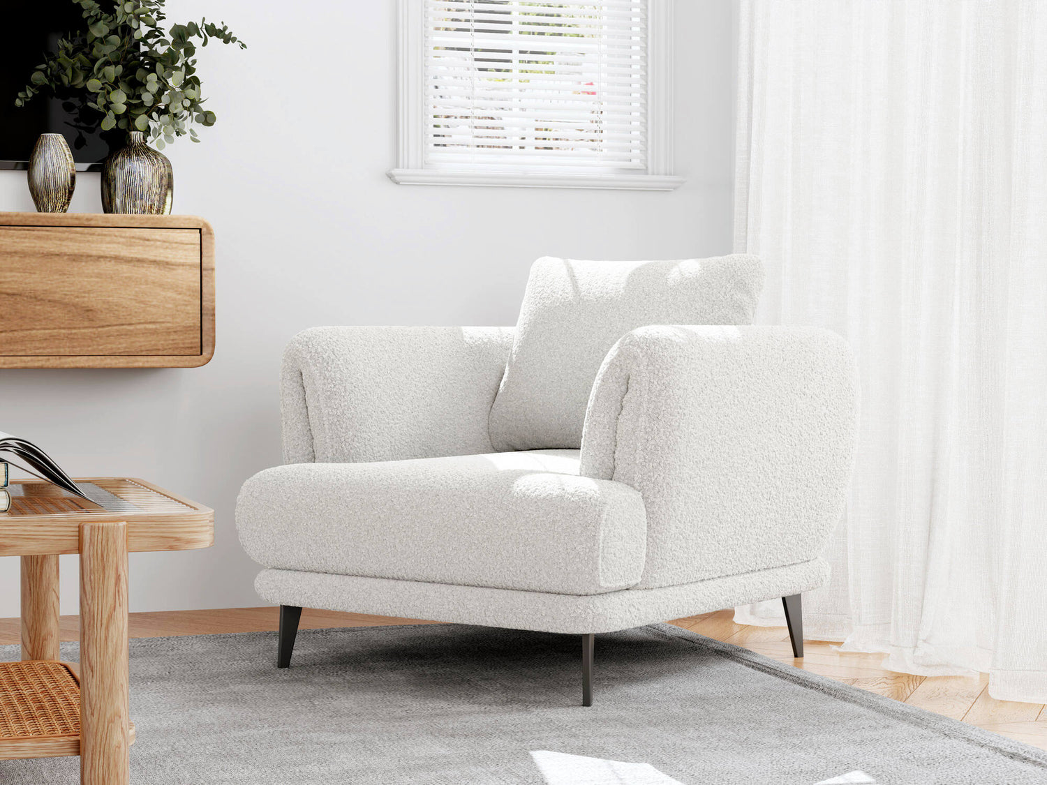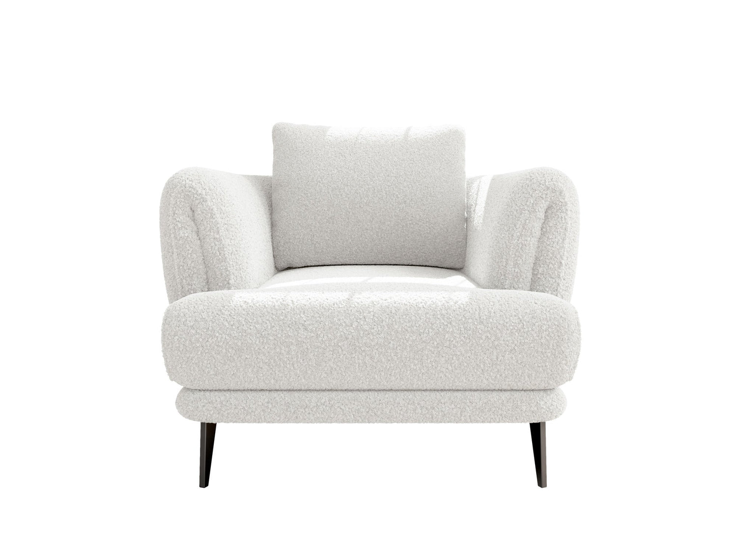 It is a true masterpiece that elevates comfort and sophistication to new heights. Immerse yourself in the lap of luxury with the white bouclé fabric, artfully crafted to embrace every curve of this impeccably stylish chair. Envision vintage elegance meeting contemporary allure – the Melissa Bouclé Fabric Chair is the epitome of timeless charm and modern refinement. Its sumptuous texture, like a gentle caress on your skin, invites you to unwind and revel in unparalleled comfort. Indulge in leisurely moments as you curl up with your favorite book, or let time slip away while you bask in a relaxing lounge session. With this chair, you'll experience a perfect harmony of luxurious relaxation and refined aesthetics. Allow yourself to be enchanted by the allure of the Melissa Bouclé Fabric Chair, where the promise of supreme comfort and an inviting ambiance beckons you to experience the true meaning of relaxation. Immerse yourself in its white embrace and elevate your living space to a whole new level of elegance and tranquility.