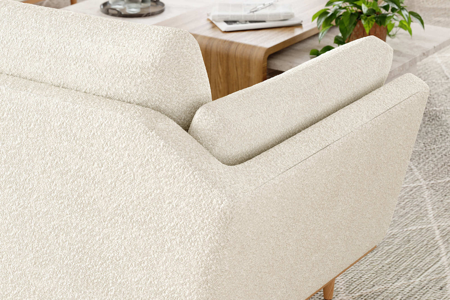 Upholstered in a soft boucle fabric, the sofa sits low and loungey, providing a cozy and inviting vibe. It has a high-density foam cushion that offers medium-firm support for comfortable seating. The Mila sofa perfectly blends style, comfort, and attention to detail, making it an ideal addition to any contemporary living space. Ate in luxury with our sofa, an exquisite masterpiece of refined taste and luxury.