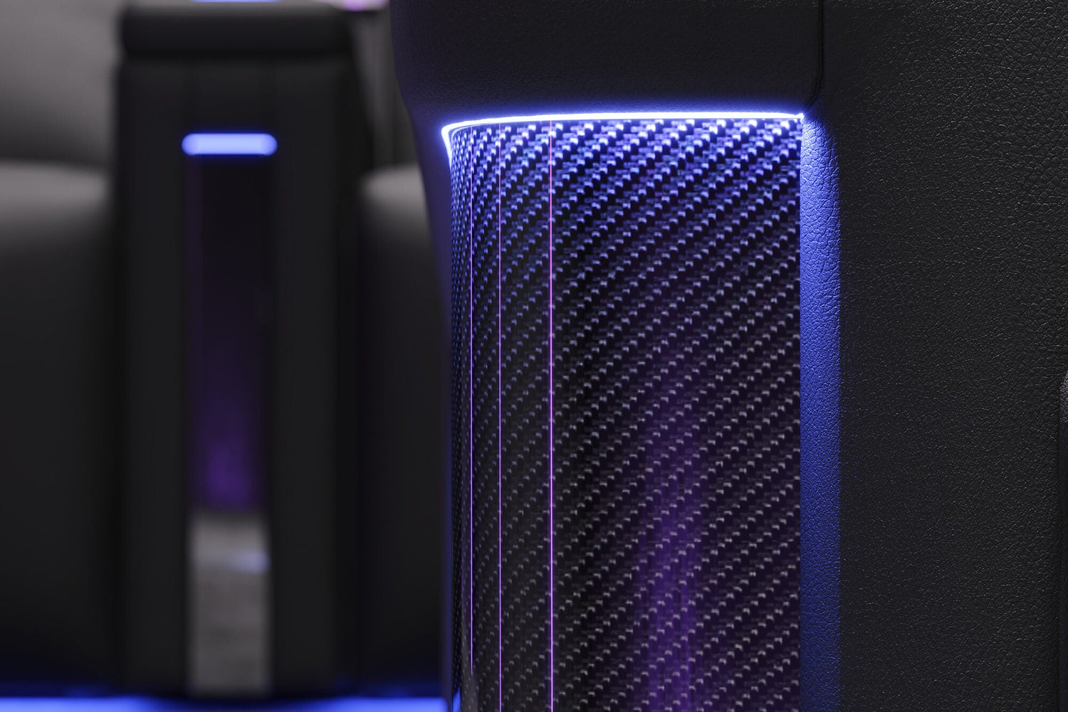 Valencia 2025 New Monza Leather Home Theater Seating With Carbon Fiber Panel Row of 3, Black
