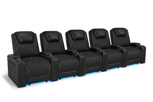 Valencia 2025 New Oslo Leather Home Theater Seating Row of 5, Midnight Black