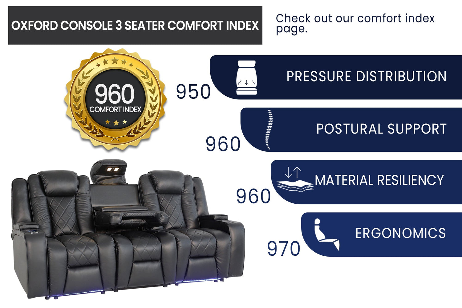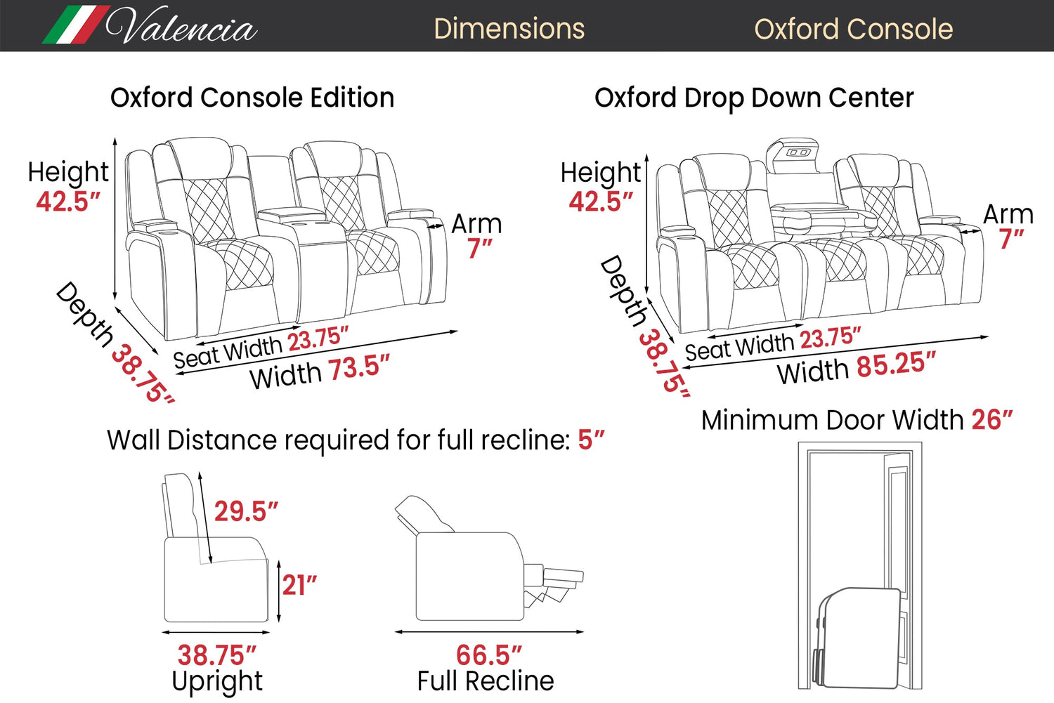 Combining design and function, the Oxford provides luxury through its supple leather, cozy cushions, supportive headrest and a center console that holds your favorite glass of wine and food platter. Both the left and right end seats are full power recliners with power headrest adjustability. Customization is possible so tailor as you see fit and enjoy the ultimate home theater experience with the Oxford.