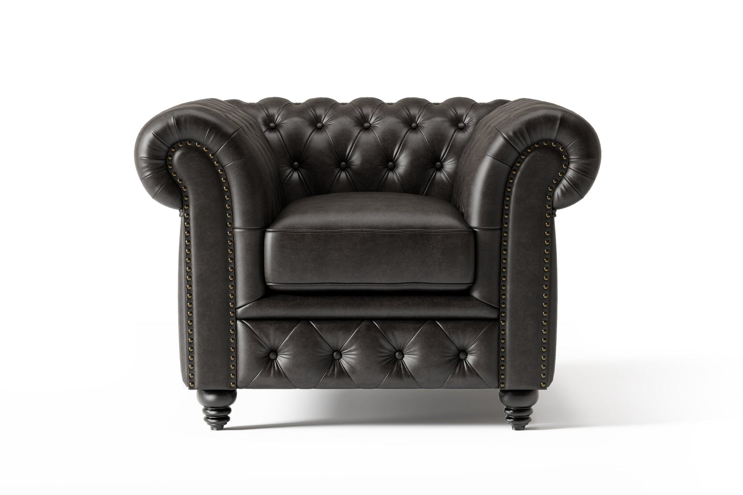 Parma Leather Chesterfield Accent Chair - Black is backordered and will ship as soon as it is back in stock.