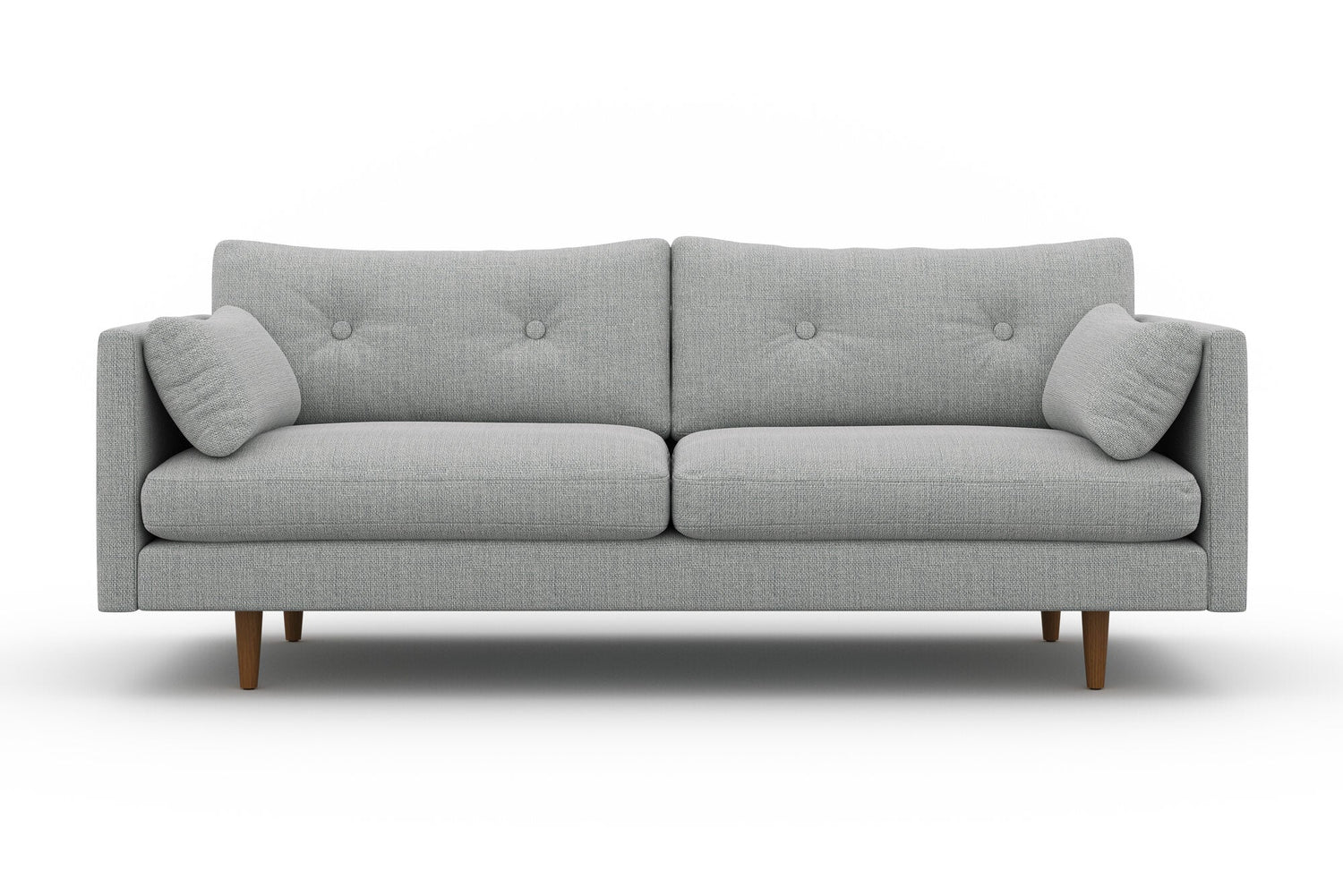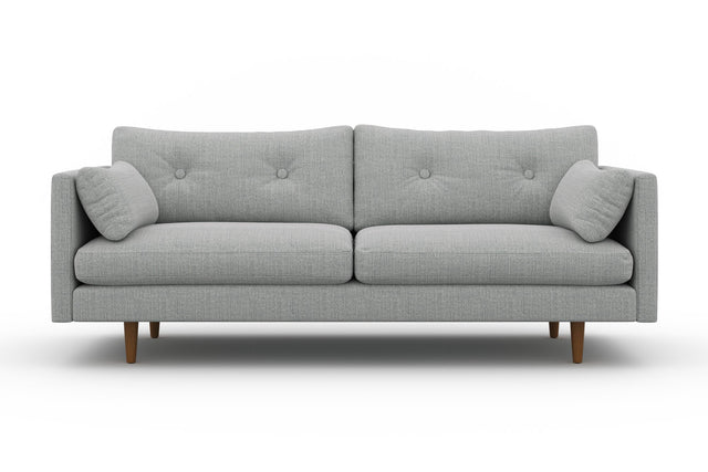 Introducing the Valencia Riga Modern Fabric Wide Sofa—a perfect blend of sophistication and comfort. Crafted with a durable Kiln Dried Wood frame and walnut-colored wooden legs, the Riga Sofa ensures lasting quality and stability. Experience luxurious comfort with High Resiliency Foam and Polyester Fiber seat cushions, complete with two armrest pillows for ultimate relaxation and style. Transform your home into a haven of style with the Riga Modern Fabric Sofa.