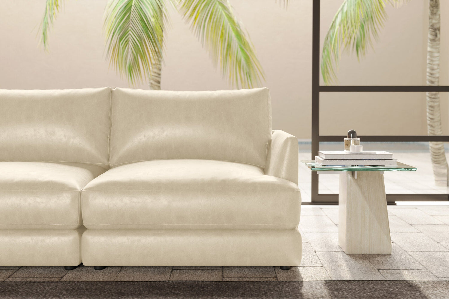 Serena Leather Corner Sectional Sofa - Beige is backordered and will ship as soon as it is back in stock.