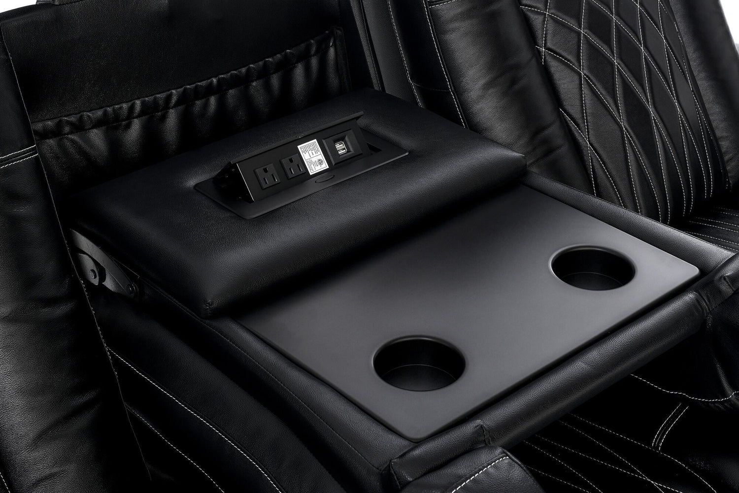 Tuscany Executive Console Heat & Massage 2025 - Midnight Black / Row of 3 Dropdown Center is backordered and will ship as soon as it is back in stock.