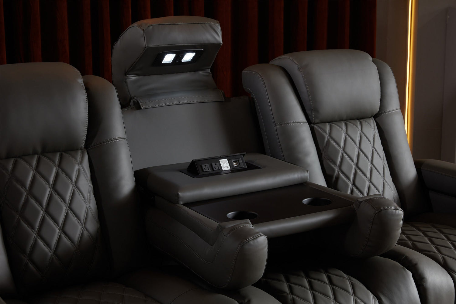 Combining design and function, the Tuscany Console provides luxury through its supple leather, cozy cushions, supportive headrest and a center console that holds your favorite glass of wine and food platter—the essential entertainment room seating accessories for a great time. Both the left and right end seats are full power recliners with power lumbar and headrest adjustability. Customization is possible, so tailor as you see fit and enjoy the ultimate home theater experience in an entertainment room seat that is the epitome of comfort with the Tuscany Console.