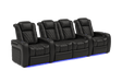 Valencia 2025 New Tuscany Italian Leather Home Theater Seating Row of 4 Loveseat Center, Midnight Black