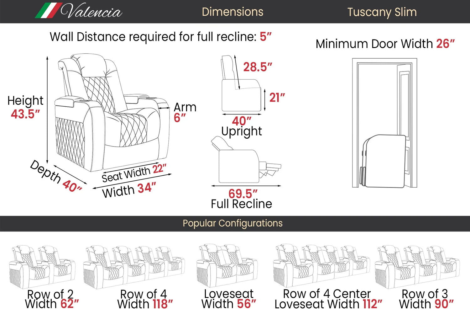 Valencia Tuscany Slim Leather Home Theater Seating Row of 3, Midnight Black