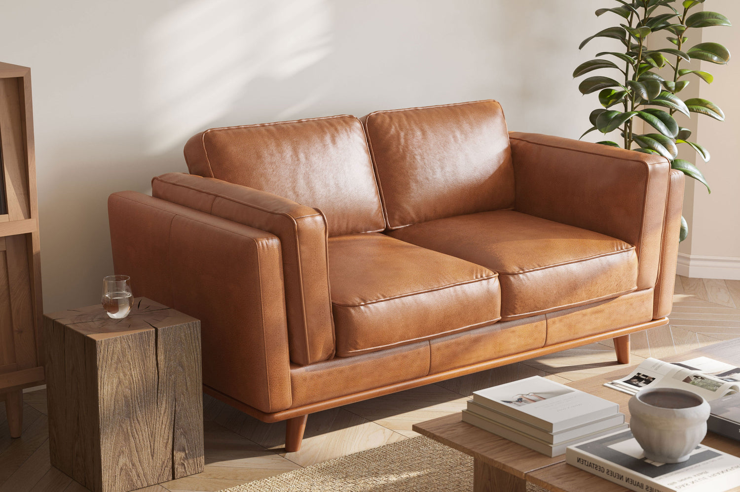 Valencia Artisan Top Grain Leather Loveseat Sofa, Cognac