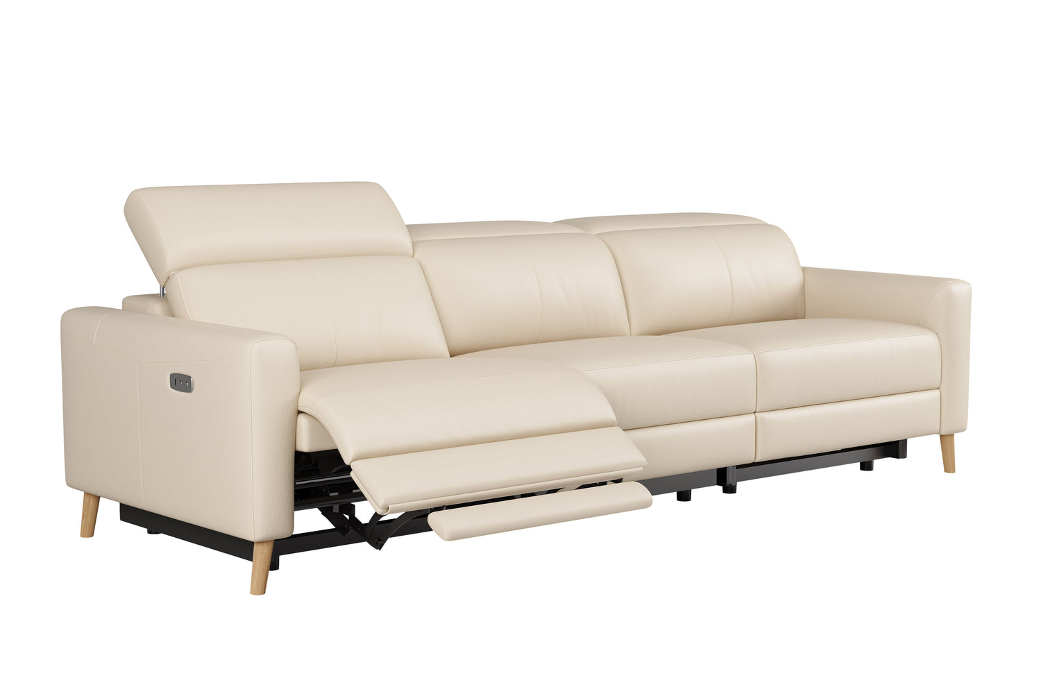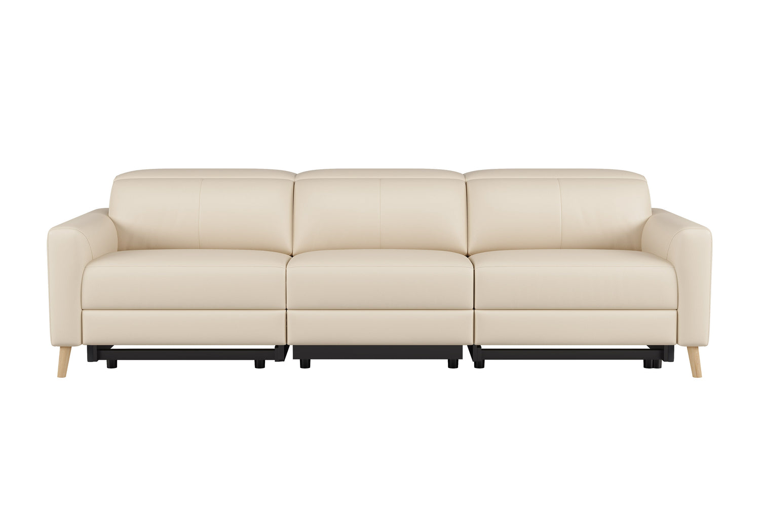 Valencia Elodie Top Grain Leather Three Seats with Double Recliners Sofa, Beige