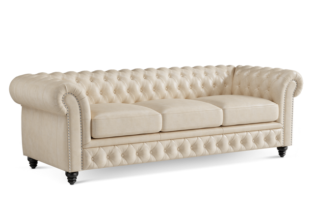 Valencia Parma 92" Full Aniline Leather Chesterfield Three Seats Sofa, Antique White