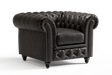 Valencia Parma Full Aniline Leather Chesterfield Single Sofa Accent Chair, Black