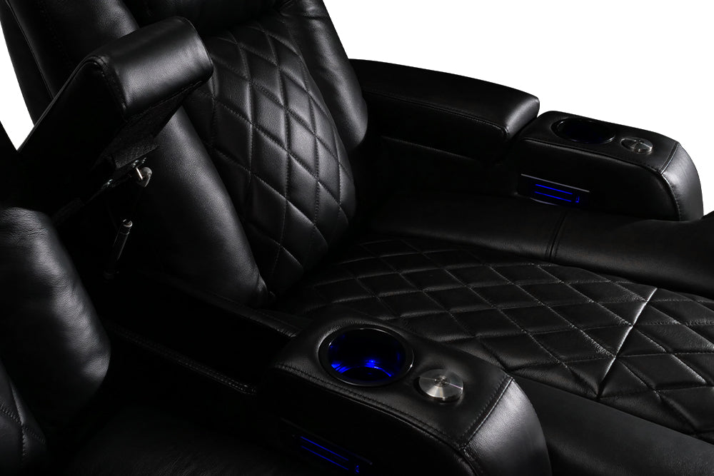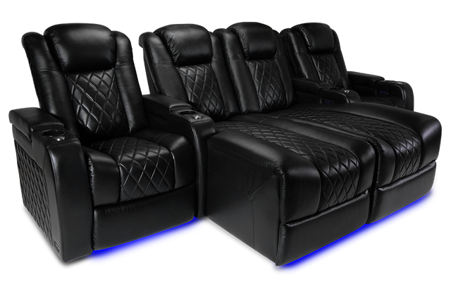An extension of our Tuscany design, the Tuscany Chaise offers extended comfort to maximize your lounging experience. Kick back and relax with the option to fully sprawl out. Pair that with the power headrest, lumbar support & recline, and you’ve got yourself the ideal luxury sectional. With a diamond-stitch design and other premium features, this home theater seating set is your one way ticket to luxury. The configuration offers a mixture of standard Tuscany seating with the chaise located on the outer seating, or standard seating with the chaise in the centre of the configuration. With a unique combination of style, comfort, and luxury, the Tuscany Chaise makes it possible to get the most out of your movie nights with friends and family.