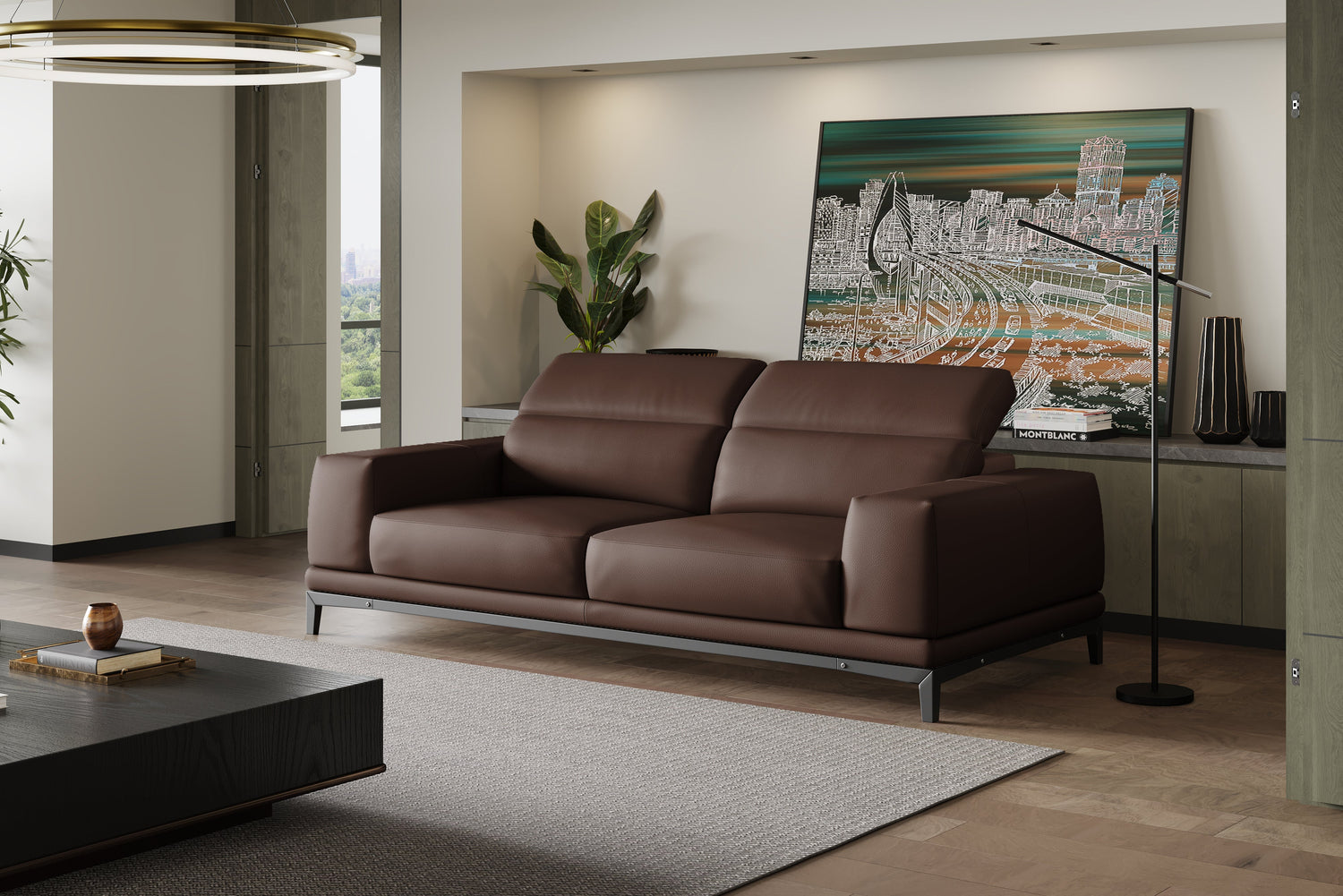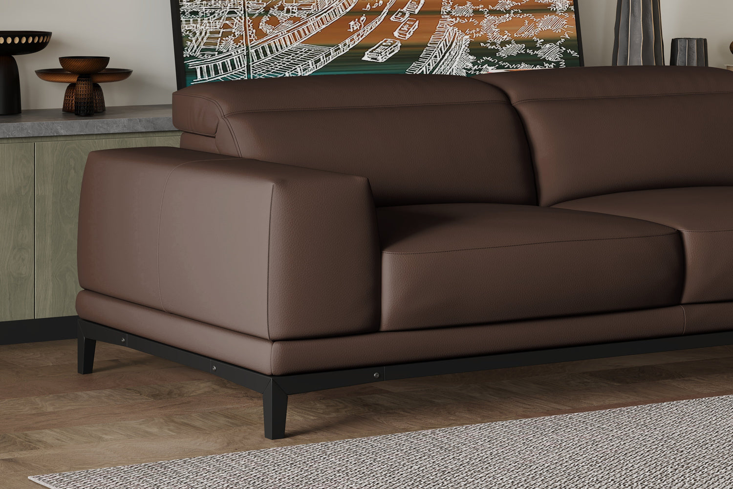 Experience luxury with the Valletta Leather Sofa, featuring Premium Italian Nappa 11000 Top Grain Leather on seating surfaces. Its seat cushion features a high-resilience foam, ensuring unparalleled comfort and support. Refined stitching accentuates the sleek design, while the metal base adorned with metal studs adds a touch of sophistication. The manually adjustable headrests cater to personalized relaxation, allowing you to unwind in style. Elevate your living space with the Valletta Wide Seats—a harmonious blend of superior craftsmanship, luxurious materials, and ergonomic design, delivering aesthetic appeal and unmatched comfort.