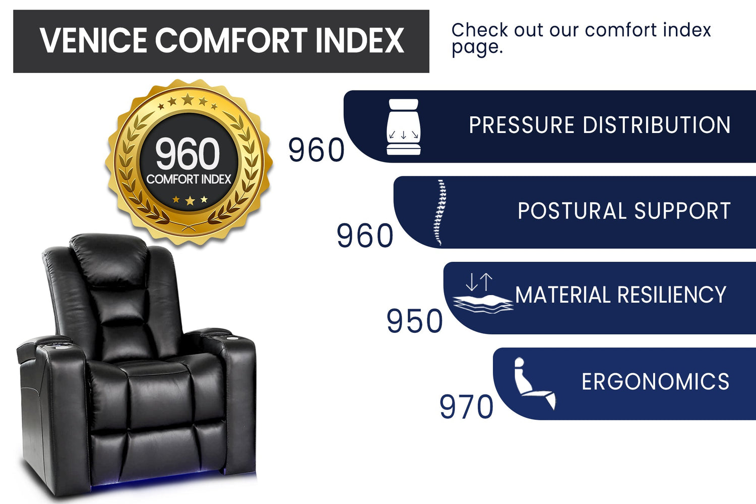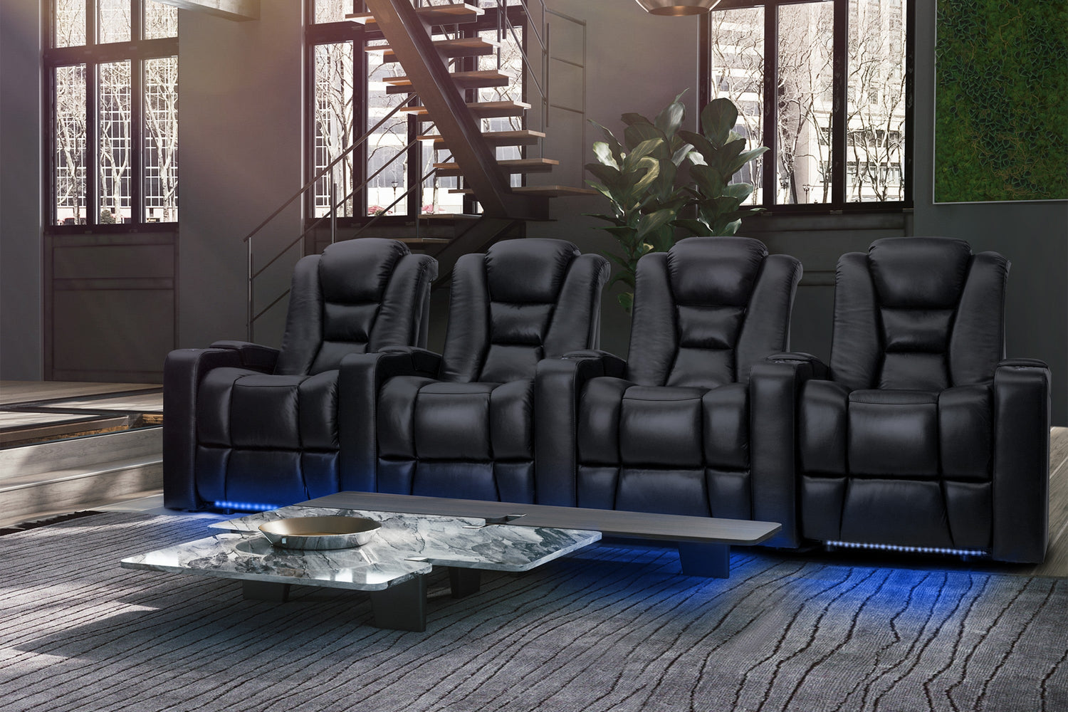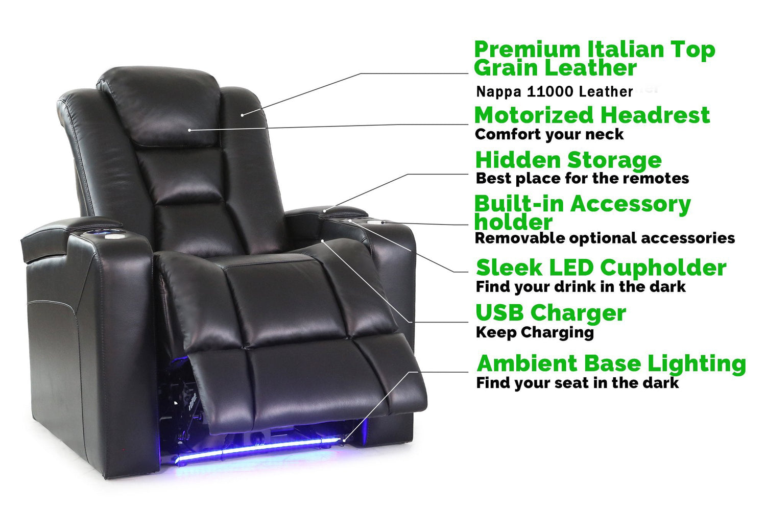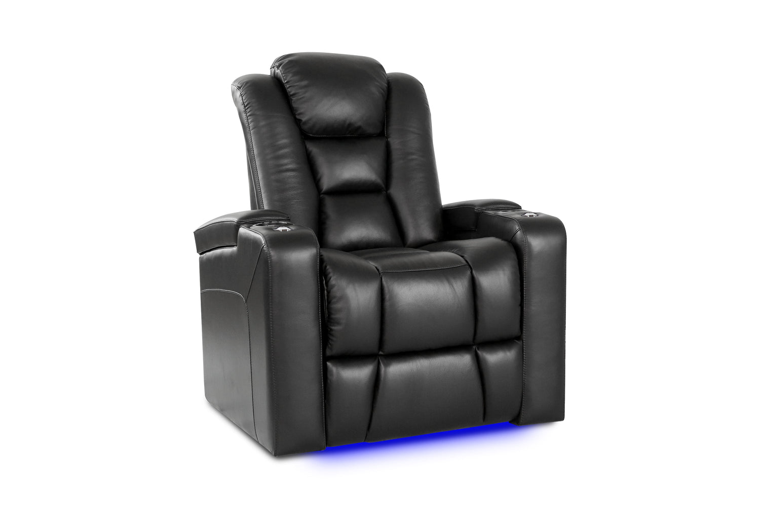 The Venice from Valencia Theater Seating has been designed to have a modern silhouette that offers fantastic lumbar support with its lower back, two-way split, padded design—it’s a home theater recliner that is the definition of luxury. Truly one of our reclining multimedia room seats that offers the maximum amount of comfort. It also comes with padded armrests with LED lit cup holders, deep plush seating, and smooth recliner mechanisms. The unique curved arm design allows for a natural, relaxed comfort, even when fully reclined.