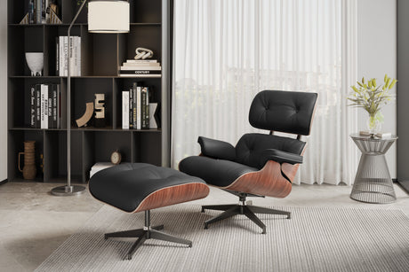 Valencia Armoni Top Grain Leather Lounge Chair & Ottoman, Black