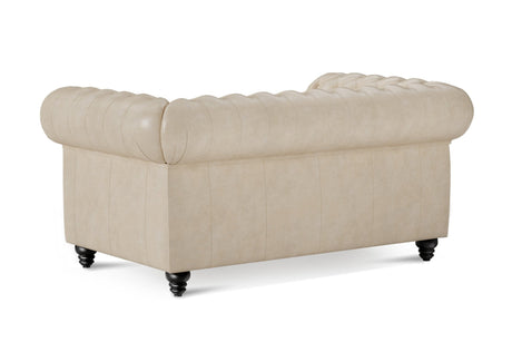Valencia Parma 64" Full Aniline Leather Chesterfield Loveseat Sofa, Antique White