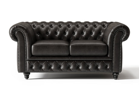 Valencia Parma 64" Full Aniline Leather Chesterfield Loveseat Sofa, Black