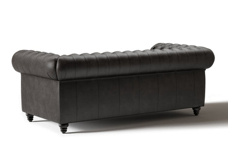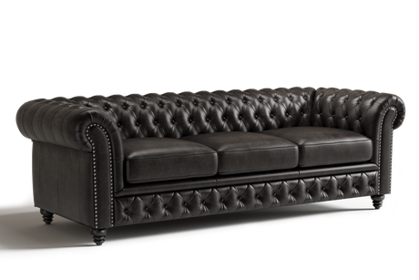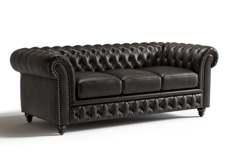 Valencia Parma 92" Full Aniline Leather Chesterfield Three Seats Sofa, Black