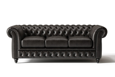 Valencia Parma 82" Full Aniline Leather Chesterfield Three Seats Sofa, Black