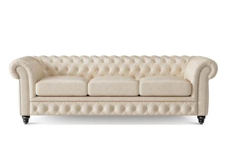 Valencia Parma 92" Full Aniline Leather Chesterfield Three Seats Sofa, Antique White